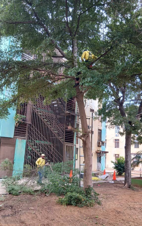 La jornada de saneamiento en la parroquia Francisco Eugenio Bustamante de Maracaibo, ejecutó poda de altura, poda de formación, poda de saneamiento y limpieza general en las áreas aledañas del conjunto residencial Raúl Leoni.