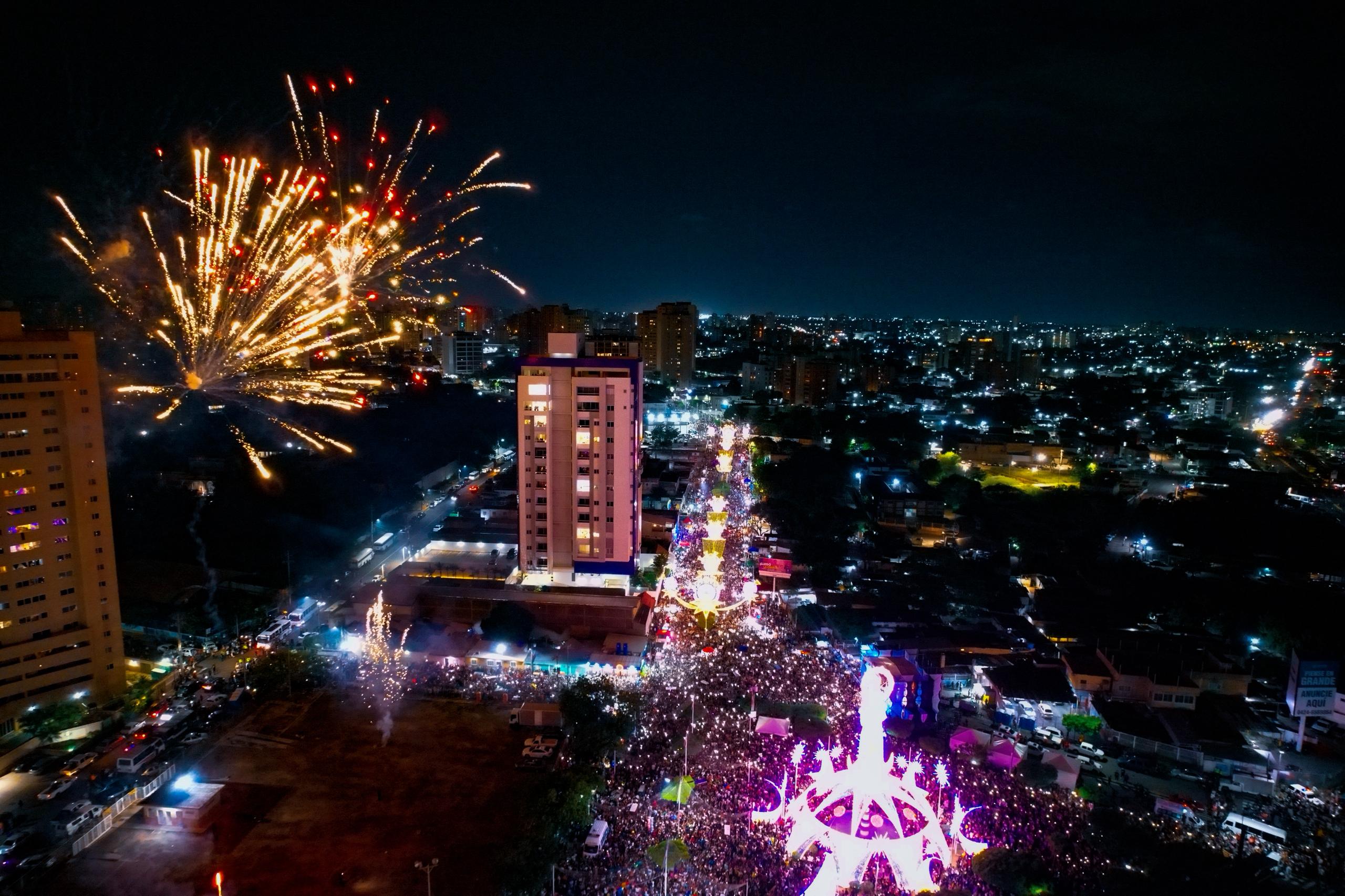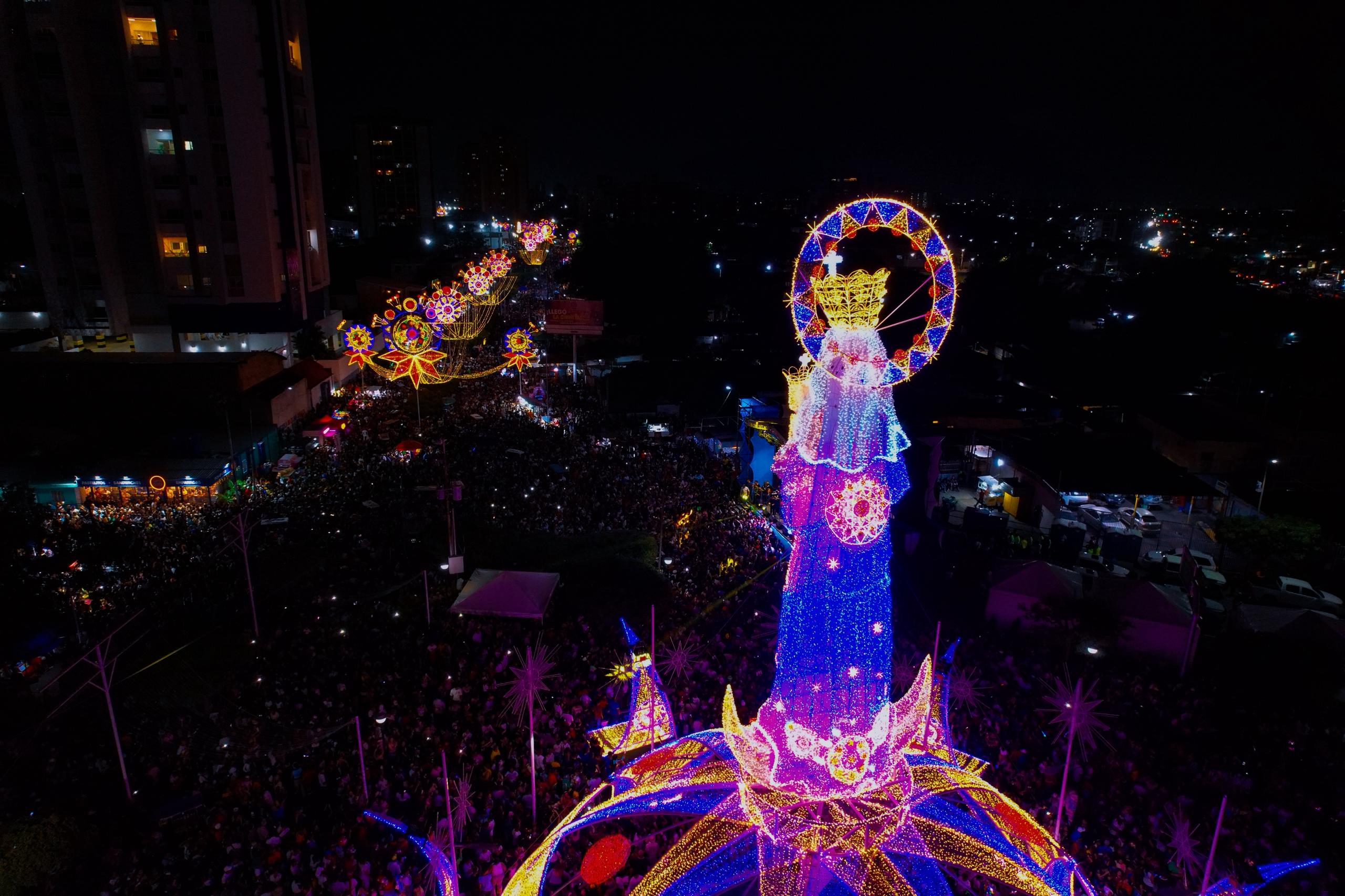 La noche comenzó con el tan esperado encendido oficial a cargo del gobernador del Zulia, Luis Caldera y el alcalde bolivariano de Maracaibo, Giancarlo Di Martino, en la plaza El Ángel, acto que marcó el inicio oficial de la época decembrina y en el que un manto de luces multicolores cubrió toda la imagen de la virgen morena que adorna la icónica plaza.