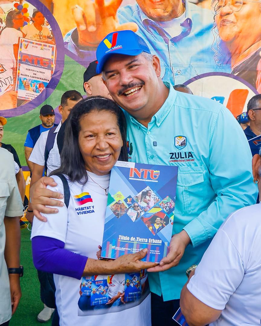 El gobernador del Zulia, Luis Caldera, junto al ministro de Hábitat y Vivienda, Raúl Paredes; el vicepresidente de la Asamblea Nacional, Pedro Infante y los alcaldes de Maracaibo y San Francisco, Giancarlo Di Martino y Héctor Soto, respectivamente, otorgaron los documentos legales que acreditan a las familias como propietarias de sus terrenos, una medida que busca saldar la deuda histórica de tenencia de tierra en la región.