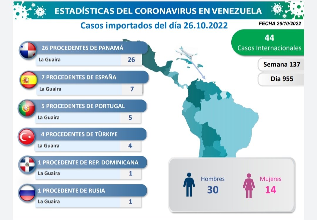 El único caso comunitario de covid-19 en Venezuela se registró en 4 estados, los más afectados están en Miranda; donde aparecen con más personas contagiadas para esta fecha. En esta oportunidad, hubo 44 casos importados. Se trata de 26 personas que llegaron desde Panamá, 7 de España, 5 de Portugal, 4 de Türkiye, 4 de República Dominicana y 1 de Rusia, todos con entrada por La Guaira.
