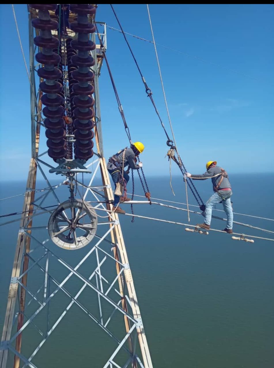«Las maniobras estructurales en la Línea 1 Tablazo-Cuatricentenario, ubicada en el Lago de Maracaibo, avanzan con firmeza mediante el reemplazo de aproximadamente 10 kilómetros de conductor, acción que brindará mayor confiabilidad al sistema eléctrico del estado Zulia», puntualizó el ministro del Poder Popular para la Energía Eléctrica, Jorge Márquez.
