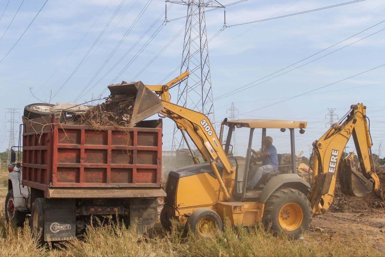 Los trabajos incluyeron desmalezamiento y recolección de escombros en toda la zona, con el despliegue de retroexcavadoras y 15 camiones volteo.