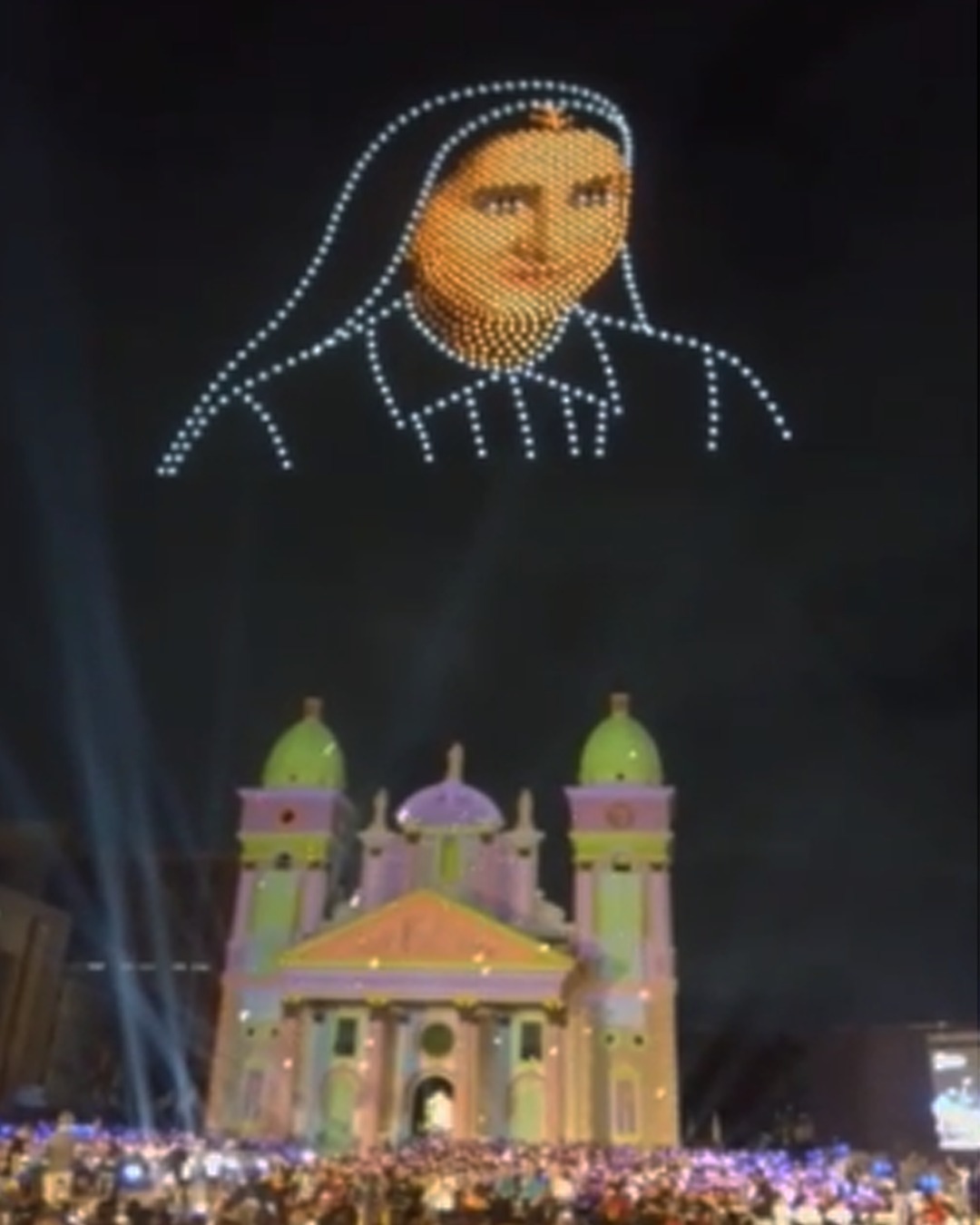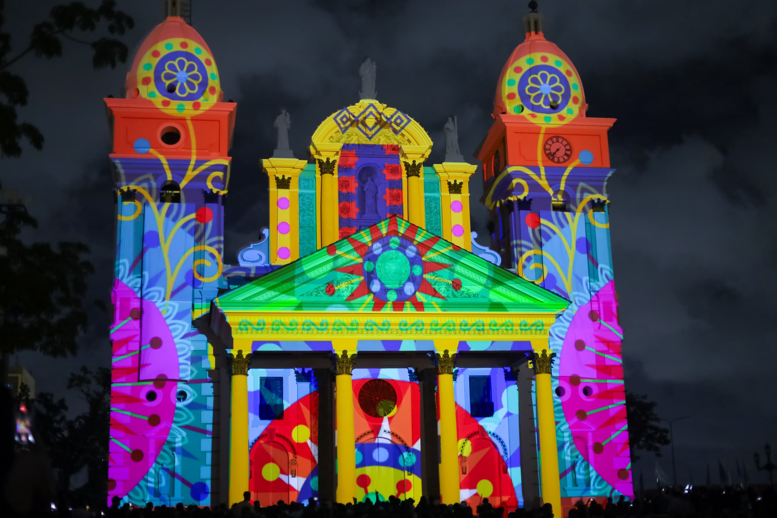 Y en la fachada de la Basilica de Chiquinquirá, para el asombro de los miles de espectadores sembrados en la plazoleta, con el novedoso video mapping, se recreó en el encuentro de María Cárdenas con la tablita, el Puente sobre el Lago y el Relámpago del Catatumbo.