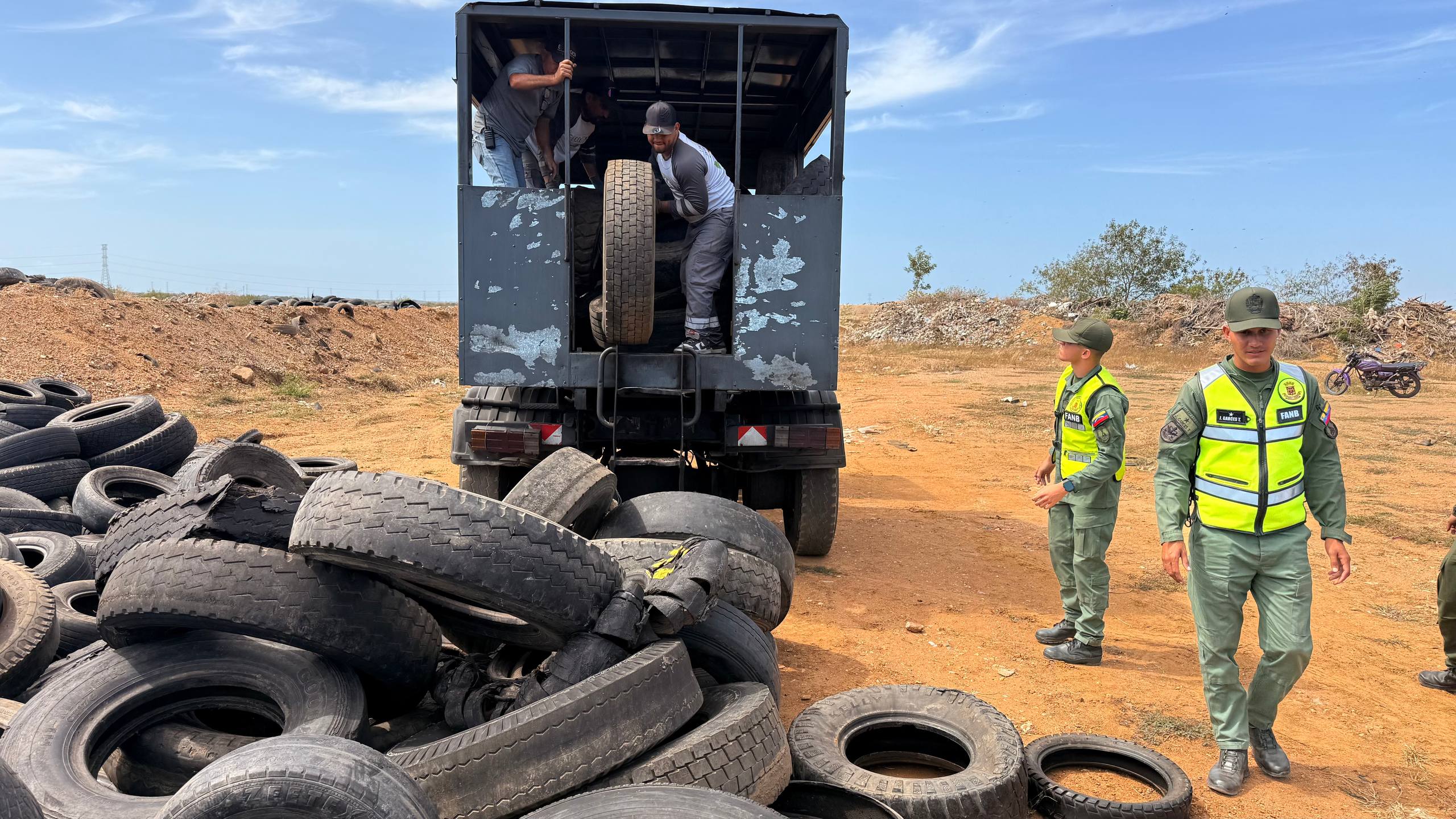 La iniciativa nacida en el seno de la FANB, busca, además, garantizar la paz y la seguridad ciudadana eliminando los neumáticos viejos, focos de alta toxicidad una vez incinerados en la vía pública.