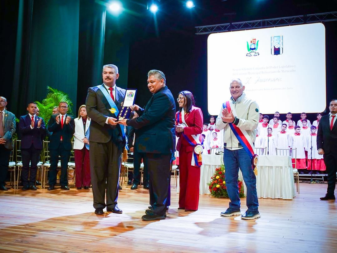 En la sesión, realizada en el Teatro Niños Cantores, también le fue conferida por el Ejecutivo regional la Orden Lago de Maracaibo al director del plantel arquidiocesano, presbítero Richard Colmenares. El acto fue presidido por la presidenta del Clez, Magdely Valbuena y la presidenta del CMM, Jessy Gascón, junto al gobernador del Zulia, Luis Caldera y el alcalde de Maracaibo, Giancarlo Di Martino.