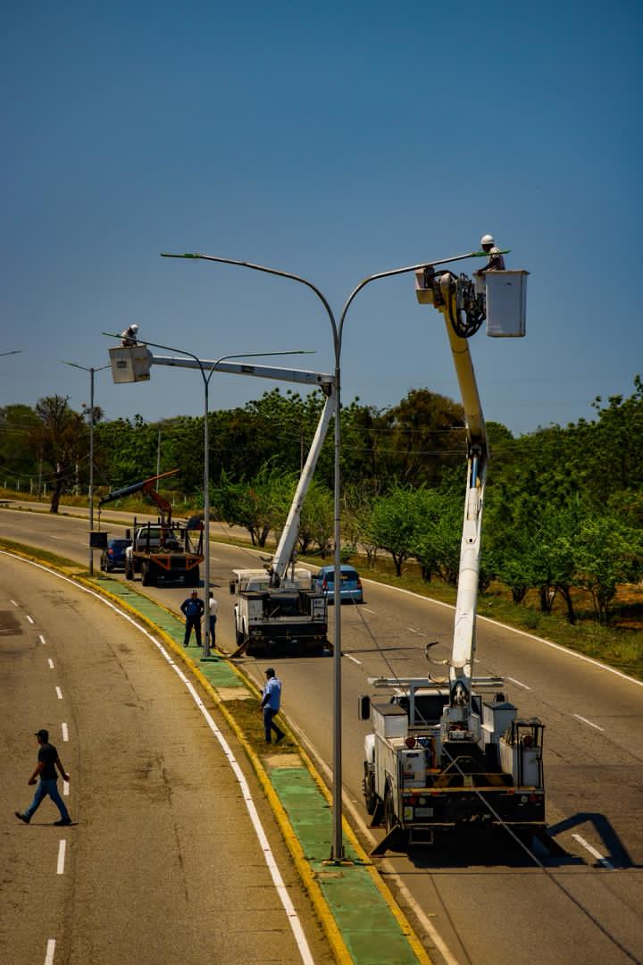 Al final de la jornada, fue supervisada la colocación de más de 200 lámparas de 200 vatios, que iluminarán el distribuidor hasta el Puente G/J Rafael Urdaneta y un tramo de la intercomunal.