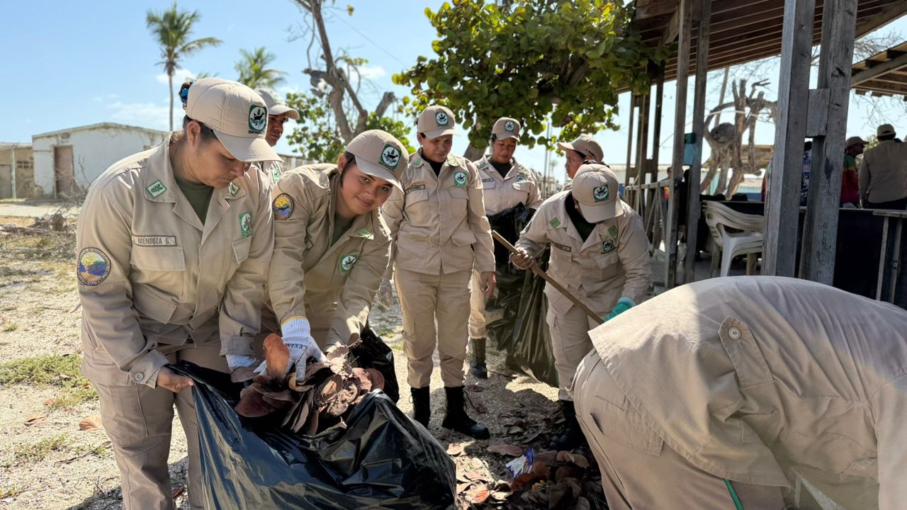 En la comunidad El Portillo de Leonardo, la parte humana del Parque Nacional Laguna La Restinga, se conjugaron los esfuerzos que logrando liberar esos espacios naturales, de 920 kilos de escombros y material vegetal y 3 mil 430 kg de plástico, papel, vidrio y demás residuos sólidos.