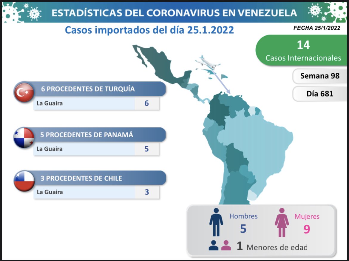 Además, los 14 casos de importados ingresaron por Maiquetía provenientes de Panamá, Chile y Turquía.