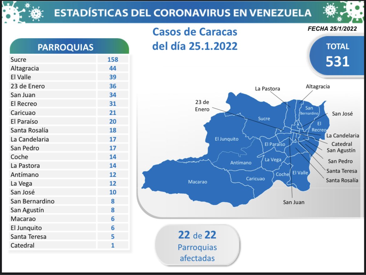 Al día 681 de pandemia, Venezuela registra casos comunitarios en 22 estados; los más afectados nuevamente son Caracas con 531 y Miranda con 308; los demás estados se detallan a continuación.